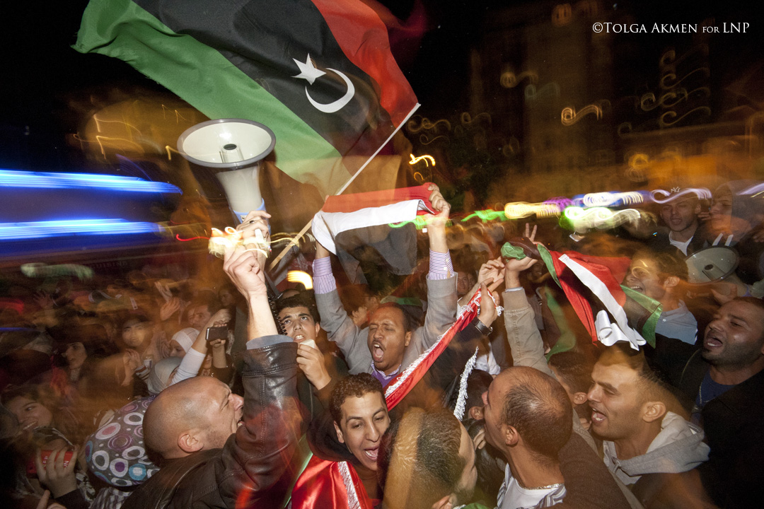 © licensed to London News Pictures. LONDON, UK 20/10/11. A group of Libyans and Egyptians celebrate in Edgware Road, London after reports of the death of Gadaffi in Libya. Photo credit: TOLGA AKMEN/LNP